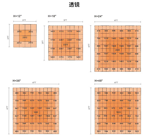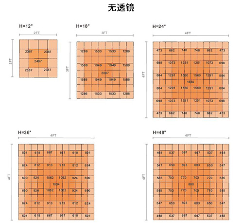 尊龙时凯科技5代LED植物灯无透镜PAR分布图